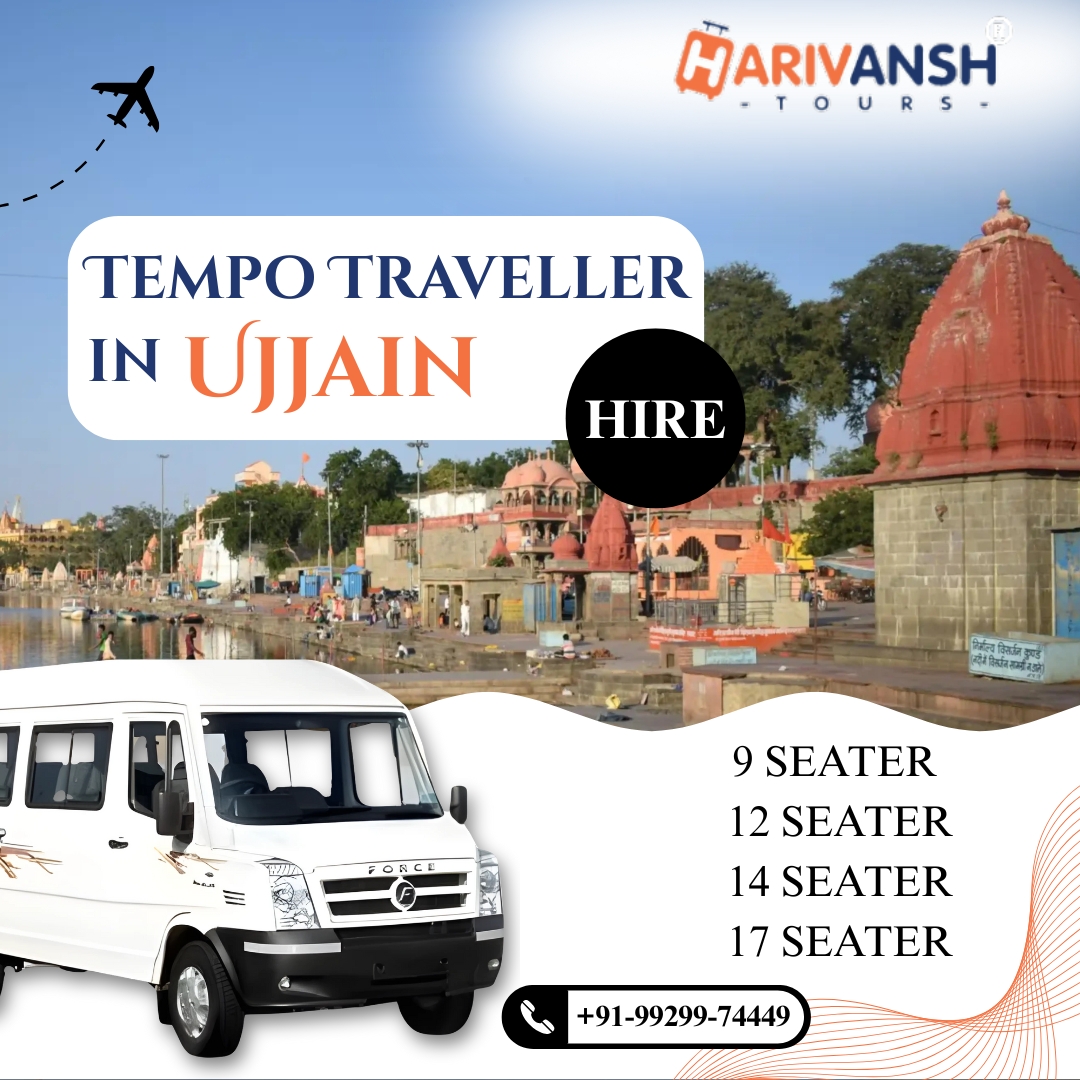 Ujjain, the holy city of Mahakal, with its sacred atmosphere and the Mahakaleshwar Jyotirlinga Temple, is one of the most sought-after destinations in Madhya Pradesh. Regardless if you are a regular or first timer visitor, Harivansh Tours offer tempo traveller hire in Ujjain will ease your temple visiting experience.The city is attractive not only because of the temples but also because of historical places like Shipra Ghat, Vikram Kirti Mandir and Sandipni Ashram. If you are thinking of short trips nearby Ujjain, places such as Mandu, Maheshwar, and Omkareshwar make for the perfect getaway. Harivansh Tours offer well-equipped Tempo Travellers in Ujjain are perfect for whether you’re taking a family pilgrimage, going on a group trip or attending a local event that requires a group vehicle that is safe, reliable, and cost-effective.